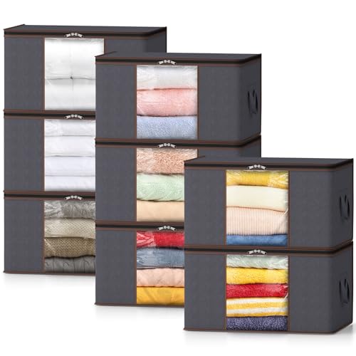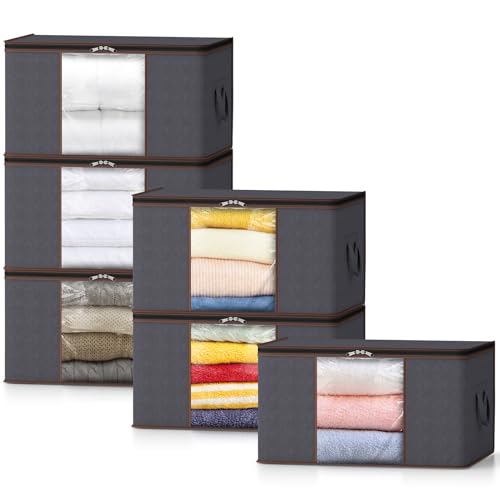 Lifewit 6-pack stor förvaringsväska för kläder med lock, 75 liter packningsbar förvaringslåda för garderob, flyttlåda med förstärkt handtag, tjockt tyg för kläder, handdukar, filtar, sängkläder, Grå
