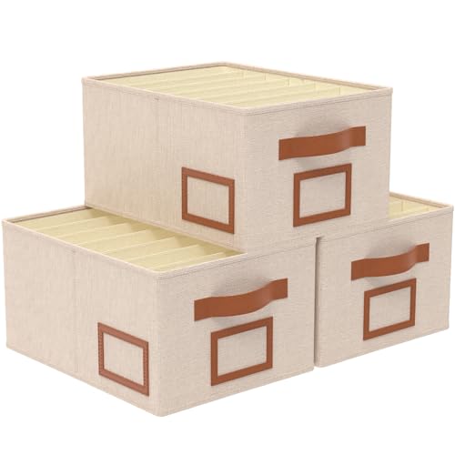 Outbros 3 stycken stora lådor organisationssystem garderob garderob arrangör vikbara förvaringslådor tyg klädförvaring & organisering med fack, för byxor, skjortor, tröjor, beige