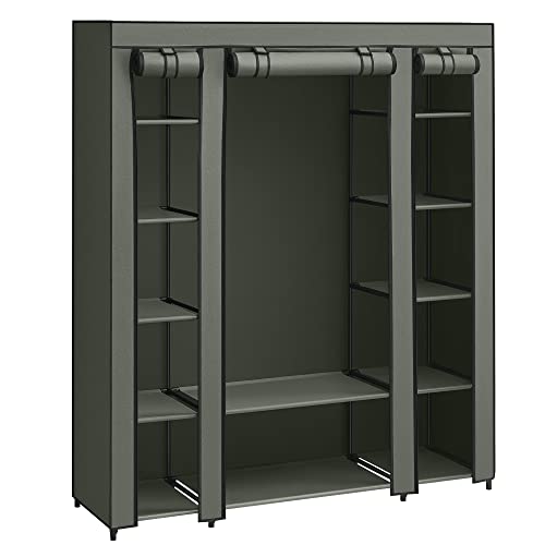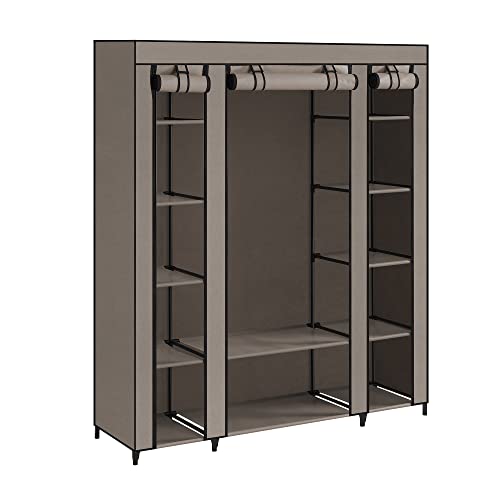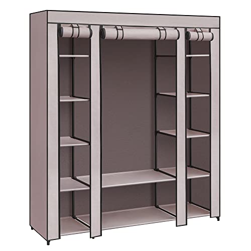 SONGMICS Garderob i tyg, bärbar garderob för sovrum, klädhängare med tygöverdrag, klädställ, 45 x 150 x 175 cm, 12 fack, metallram, gråbrun LSF003R02