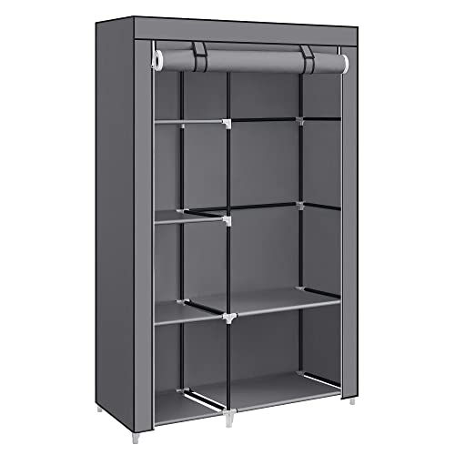 SONGMICS Garderob, med 1 klädstång, 6 hyllor, non-woven tyg, metallram, 45 x 105 x 168 cm, för sovrum, hall, grå RYG085G02