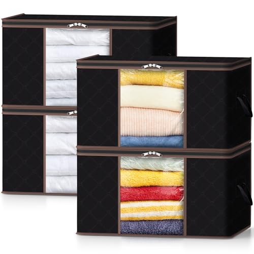 Lifewit 4-pack stor förvaringsväska för kläder med lock, 75 liter packningsbar förvaringslåda för garderob, flyttlåda med förstärkt handtag, tjockt tyg för kläder, handdukar, filtar, sängkläder, Grå