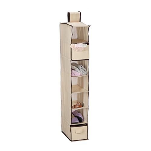 Relaxdays Hängande hylla, garderob, 7 fack, tyg, H x B x D: 106 x 16,5 x 31 cm, 2 lådor, klädförvaring, beige