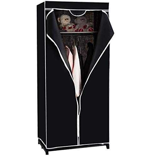 COSTWAY Garderob tyg, tygskåp med klädstång och hylla, tyggarderob, vikskåp, textilgarderob för vardagsrum, sovrum, källare, 74 x 50 x 172 cm (svart)