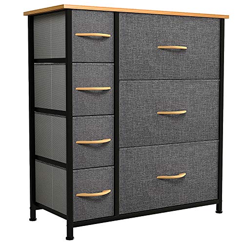 YITAHOME Byrå med katjoniskt tyg, 7-lådors förvaringsenhet för sovrum, vardagsrum, garderob, robust stålram, lättdragna tygfack och trätopp, tygbyrå
