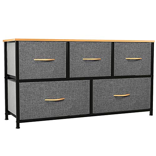 YITAHOME Byrå med icke-vävt tyg, 5-lådors förvaringsenhet för sovrum, vardagsrum, garderob, robust stålram, lättdragna tygfack och trätopp, tygbyrå
