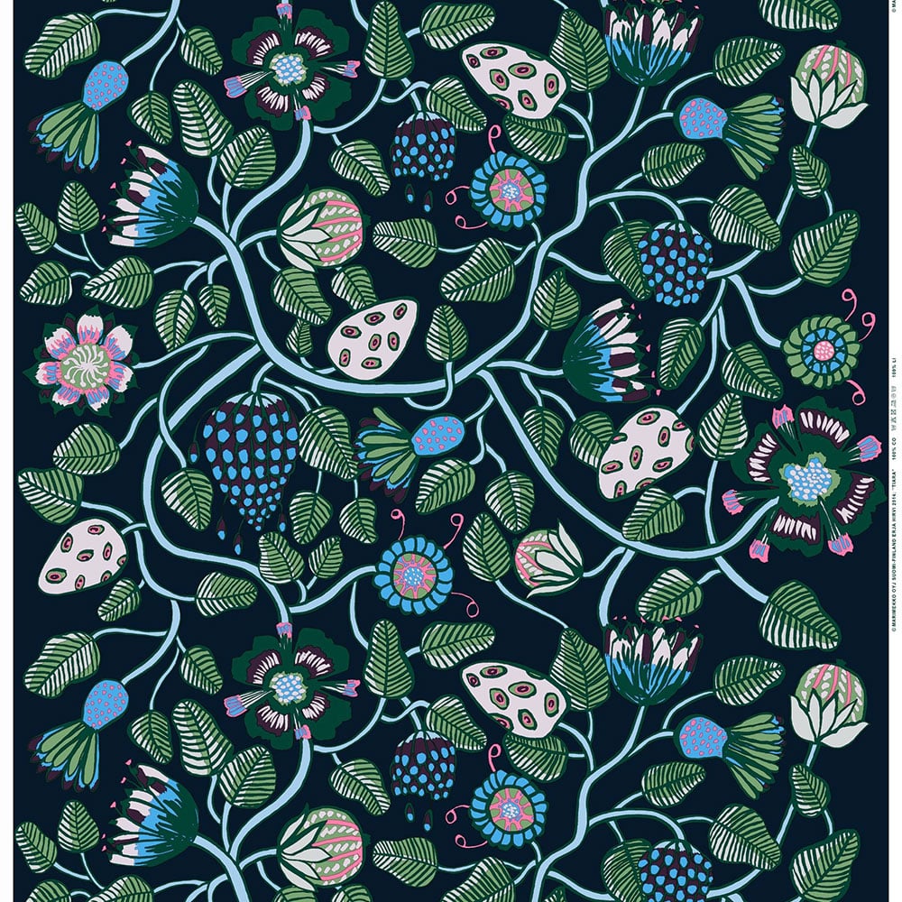 Marimekko Siirtolapuutarha Tyg Blå-Grön 145cm