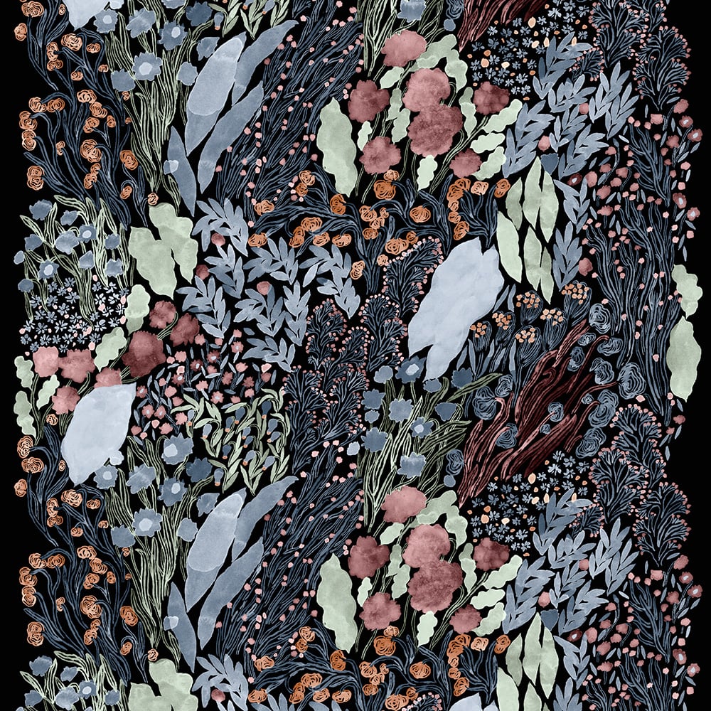 Marimekko Unikko Mörkblå Linne Tyg
