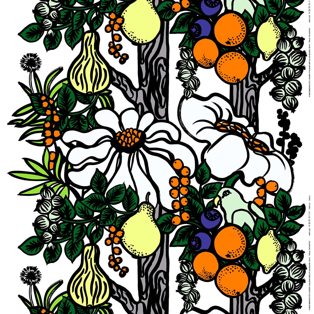 Marimekko Siirtolapuutarha tyg White-yellow-orange-light blue