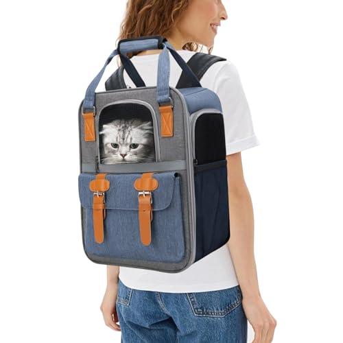 PETCUTE Ryggsäck för katter, andningsbar hundryggsäck med vattentätt vadderat tyg, extra stor valpryggsäck med inre säkerhetskoppel, husdjursryggsäck för 2 katter passar upp till 13 kg, flygbolagsgodkänd