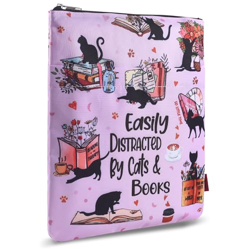 LParkin Kattböcker kaffebok ärmskydd, katter bokfodral med dragkedja, 30 x 20 cm tvättbart tyg bokälskare (lätt distraherad av katter och böcker)