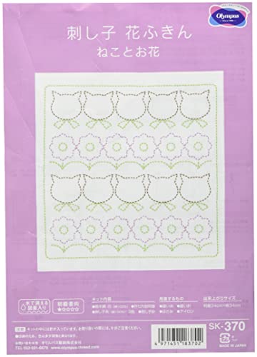 Olympus Thread Sashiko broderiförpackning Hana Fukin popmönster katter och blommor tyg tryckt