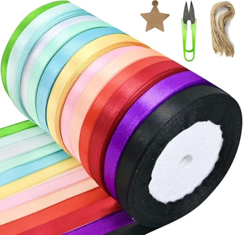 12 färger polyester satinbandsset, dekoration presentband set med 50 kraftpapper presenthängare jutesnöre sax, massivt satintygband, bröllop tygband, dekorativa band satin presentband tyg
