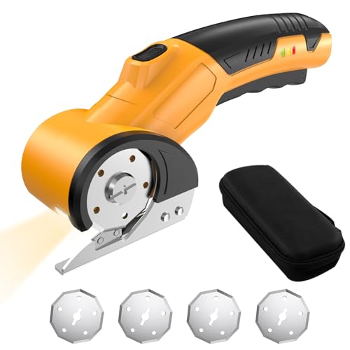 Kartongskärare – 4 V elektrisk sax för kartong återvinning, rullskärare tyg med 3 reservblad, USB-uppladdningsbar batterisax för tyger, mattor, läder, kartong, filt, plast