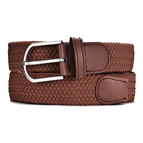 TANGCHAO Bälte tygbälte Stretchbälte elastiskt flätat bälte Flätat och elastiskt töjbart bälte för kvinnor och män Bredd 3,3 cm, brun 105 cm