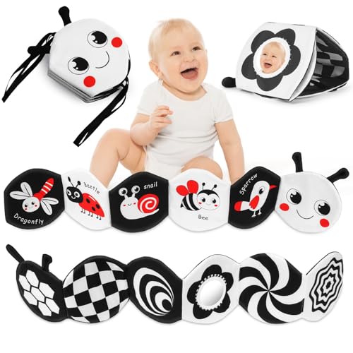 MOSTFUN Barnvagnsleksak, babystol, leksak, svart, vit, leksak, baby, tygbok, baby, kontrastbok, baby, kontrastleksak, baby, sensoriska leksaker för 3-6 9 12 månader, flickor och pojkar