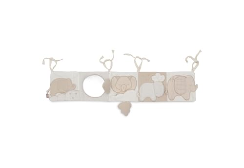 Jollein tygbok för lekhage – Elephant Tales – med band för fastsättning – aktivitetsbok med sprakande folie och elefantmotiv – främjar sinnen och motorik – från födseln – mjuk och handtvättbar