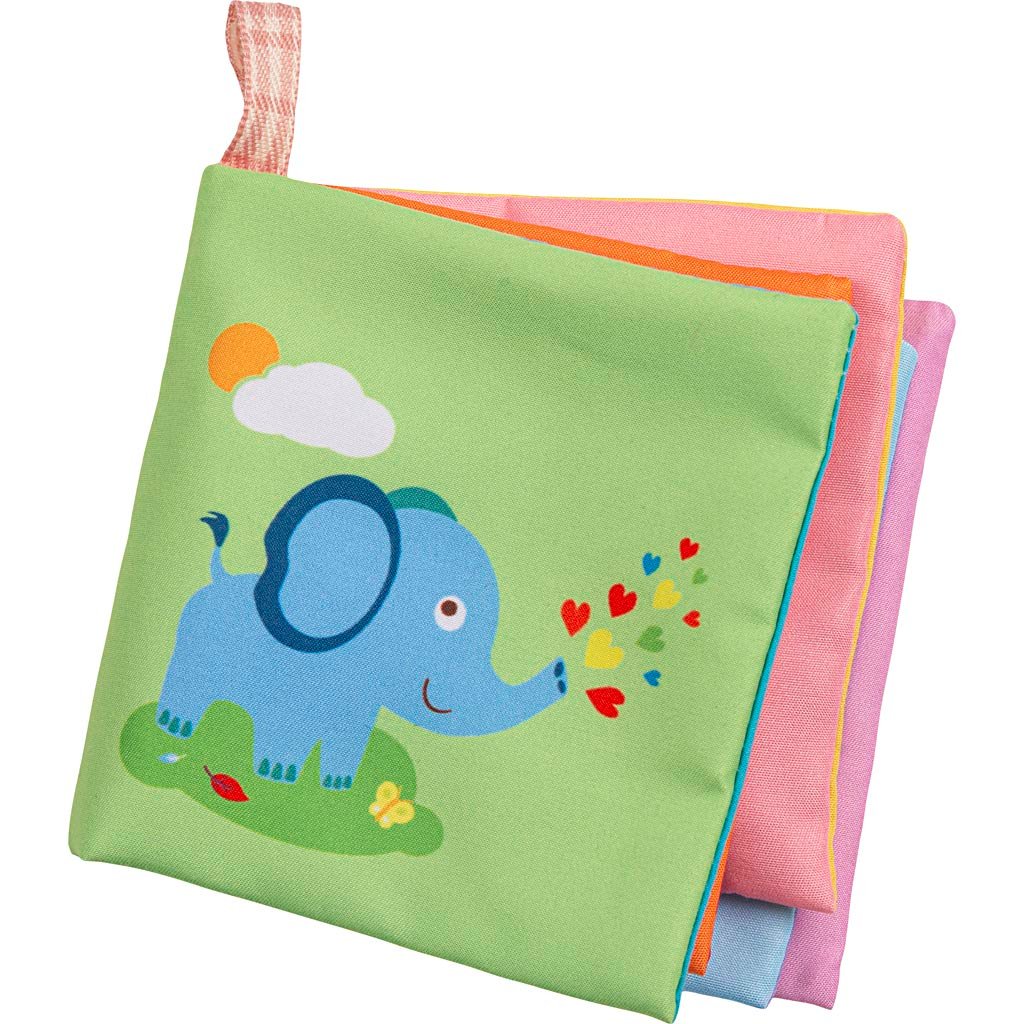 Haba 300146 - Elephant Egon tygbok, mjuk crackle bok med många känsla- och lekeffekter, vackert designade babyleksaker från 6 månader (förpackningen kan variera)
