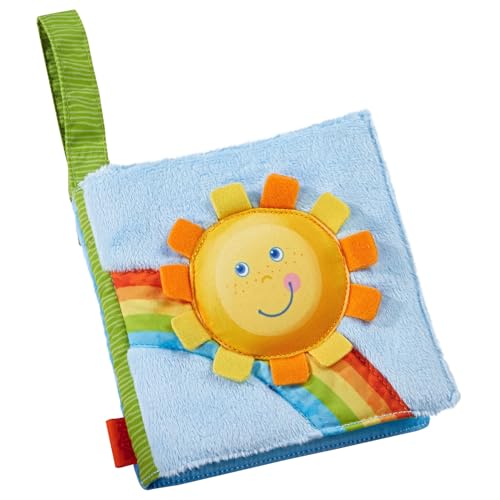 HABA första ord buggy bok – tygbok med bitelement och kardborreband, för barn från 6 Moater, tvättbar vid 30 °C, babybok med pipande och sprakande folie – 2012330001