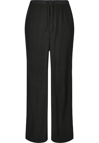 Urban Classics Dambyxor, dam, plisse-byxor, lätta tygbyxor för kvinnor, vida ben, dragsko i midjan, finns i 2 färger, storlekar XS – 5XL, svart, XL