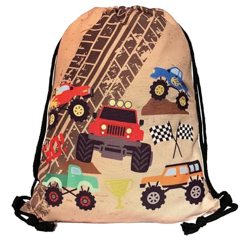HECKBO barn gympapåse monstertruck - 40x32cm - sportkläder vattenflaska - dagis, skola, tygpåse förskola - ryggsäck, väska, sportväska, gympapåse pojkar flickor