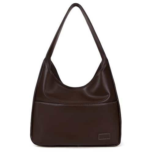 ACUYE Fuskläder tygväska axelväska för kvinnor, stor läderväska handväska hobo-handväska arbete tygväska handväska dam tygväska axelväskor för arbete resor, Kaffe, 32cm