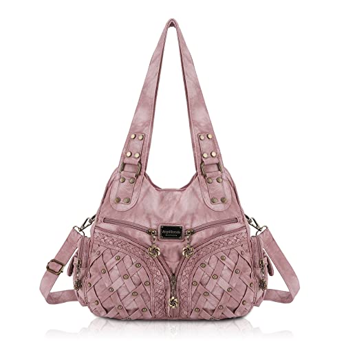 Ängel Barcelo handväskor och handväskor dam tygväska axel topphandtag skolväska hobo-väskor mode tvättad PU-läder handväska, Mörkrosa, onesize