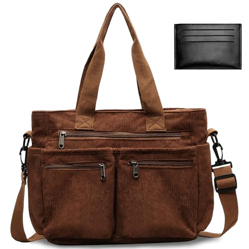 Hoseay Tygväska Kvinnor Axelväska Dam Stor Universitet Väska Kvinnor Manchester Axelväska Dam Elegant Axelväska med Justerbar Axelrem Resa Arbete Skolan Shopping, Brun, Taglia unica