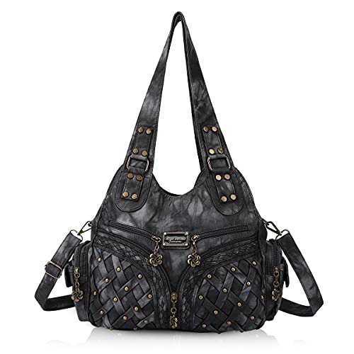 Ängel Barcelo handväskor och handväskor dam tygväska axel topphandtag skolväska hobo-väskor mode tvättad PU-läder handväska, Svart, grått, onesize
