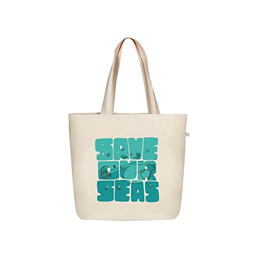 Eco Right Estetisk tygväska för kvinnor – stor, återanvändbar, tygväska med dragkedja med innerficka, perfekt för skola, shopping, arbete, strand, söt och miljövänlig present till flickor, lärare, mödrar, Rädda Oue Seas naturliga, En storlek, Utility