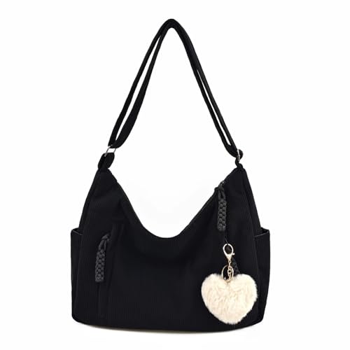 Mervokl manchester tygväska kvinnor med dragkedja stor kapacitet handväska med justerbar axelrem ledig crossbody väska dam sladd hoboväska för shopping skola arbete resor universitet, Svart, en