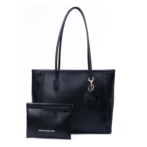PORRASSO Dam tygväska stor handväska mode axelväska PU-läder topphandtag väska för skola arbete resor shopping, Svart, Large