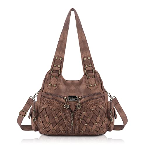 Ängel Barcelo handväskor och handväskor dam tygväska axel topphandtag skolväska hobo-väskor mode tvättad PU-läder handväska, Brun, onesize