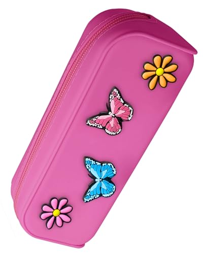 Online skolväska silikonstift I tygväska för skolan I barnväska med praktisk dragkedja I pennfodral för flickor och pojkar I fjärilsdesign, Rosa, Unisex