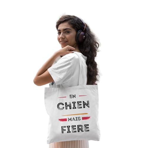 Republic of California Toteväska med hund men stolt - humoristisk och snygg tygväska, Vitt och blått, 38 X 42 CM, Utility