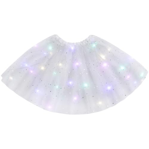 URAQT Tyllkjol dam LED tutu vuxna, tutu kjol LED, minikjol med LED-lampor för karneval temafest balett dans, fin klänning halloweenkostym, 40 cm, Vit, one size