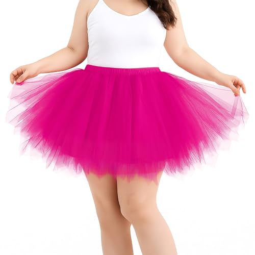 TRIWORKS Stora storlekar rosa tutu dam 80-tals tutu herr tyllkjol rosa dam underkjol kort balett puffy tutu vintage elastisk retro halloween karneval, Rosa-röd, 4XL plus size