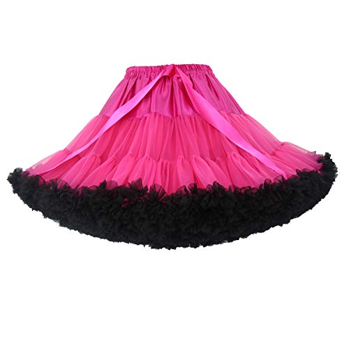 FOLOBE Vuxna lyxig, mjuk, chiffongunderkjol, tyll, tyllkjol, dam, tutu, maskeradkostym, underkjol, balett, danskjol, Roseblack, L