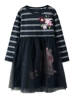 Orini Greta Gris Tyllklänning - Navy Blazer