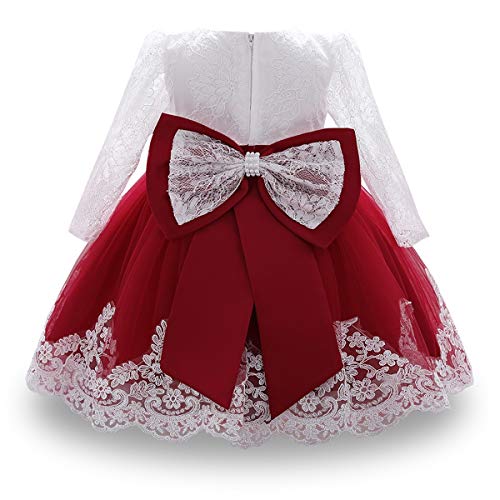 WOCINL Baby flickor dop långärmad spets rosett klänningar prinsessa bröllop födelsedag festdop tyllklänning