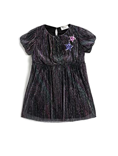 Koton flicka Gleamy tyllklänning kort puffärm stjärna paljett detalj fodrad rock, Lila randig (9s4), 5-6 År
