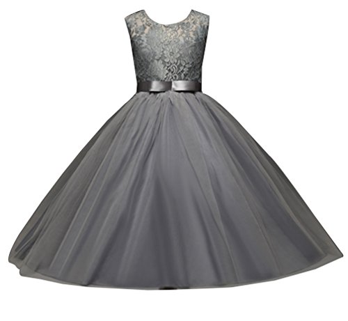 Flickor spets tyllklänning prinsessa födelsedag/bröllop/brudtärna festklänning balklänning aftonklänning maxiklänning, 8 grå, 140 cm(7-8 År)