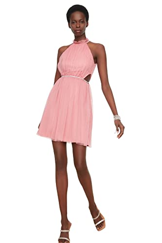 Trendyol Dam detaljerad tyllklänning skuren ut klänning, ros, 40