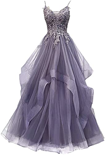 Xinaier Tyllklänning med spagettiremmar för damer, lång, formell aftonklänning, balklänning, brudklänning, anpassbar, 40