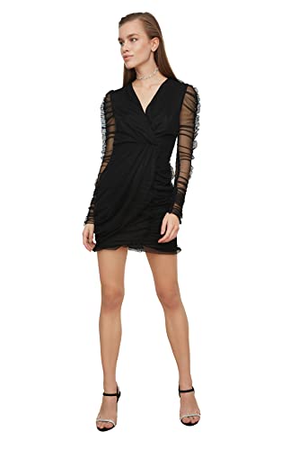 Trendyol Kvinnors deformerad Anvelop tyllklänning klänning, svart, 36