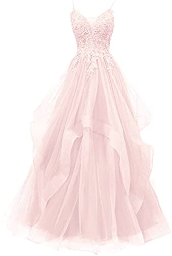 Xinaier Tyllklänning med spagettiremmar för damer, lång, formell aftonklänning, balklänning, brudklänning, anpassbar, ROSA, 36