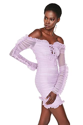 Trendyol Dam Drapeli-tyllklänning klänning, lila, 38