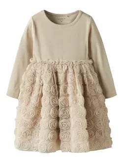 Minymo Tyllklänning Beige Melange 86 cm Beige 86 cm kvinna
