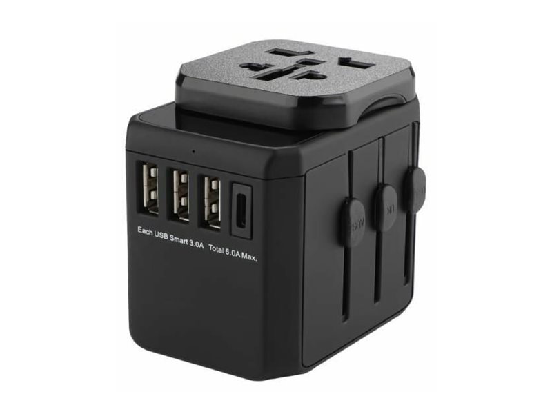 USB-C-laddningsavdelare med dubbla USB-C-uttag Maclean eluttag, splitter med 2 uttag och USB A/C 2,4A, typ E, 2 x 16A, MCE336 E