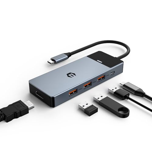 Tymyp USB C-hub, USB 3.0, PD 100 W, USB C-splitter med MacBook Pro/Air, Thinkpad, bärbar dator och fler typ C-enheter, 6-i-1 multiportadapter, USB C Avec Affichage 4K HDMI