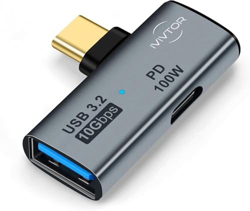 IVIVTOR USB C Adapter 2-i-1 - Typ-C Port till USB 3.2 OTG Splitter Med Snabbladdning 100 W - För Bärbar Dator Surfplatta Telefon - Svart
